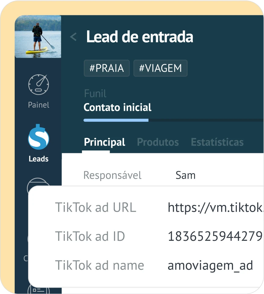 O TikTok CRM da Kommo mostra quais anúncios geram conversas e sincroniza os Formulários Instantâneos com cartões de leads, capturando todos os detalhes.