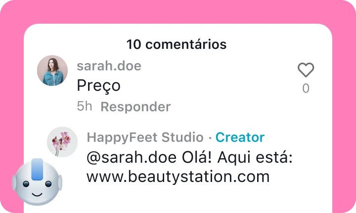 O chatbot da Kommo faz mais do que enviar mensagens genéricas. Ele responde a comentários, mensagens