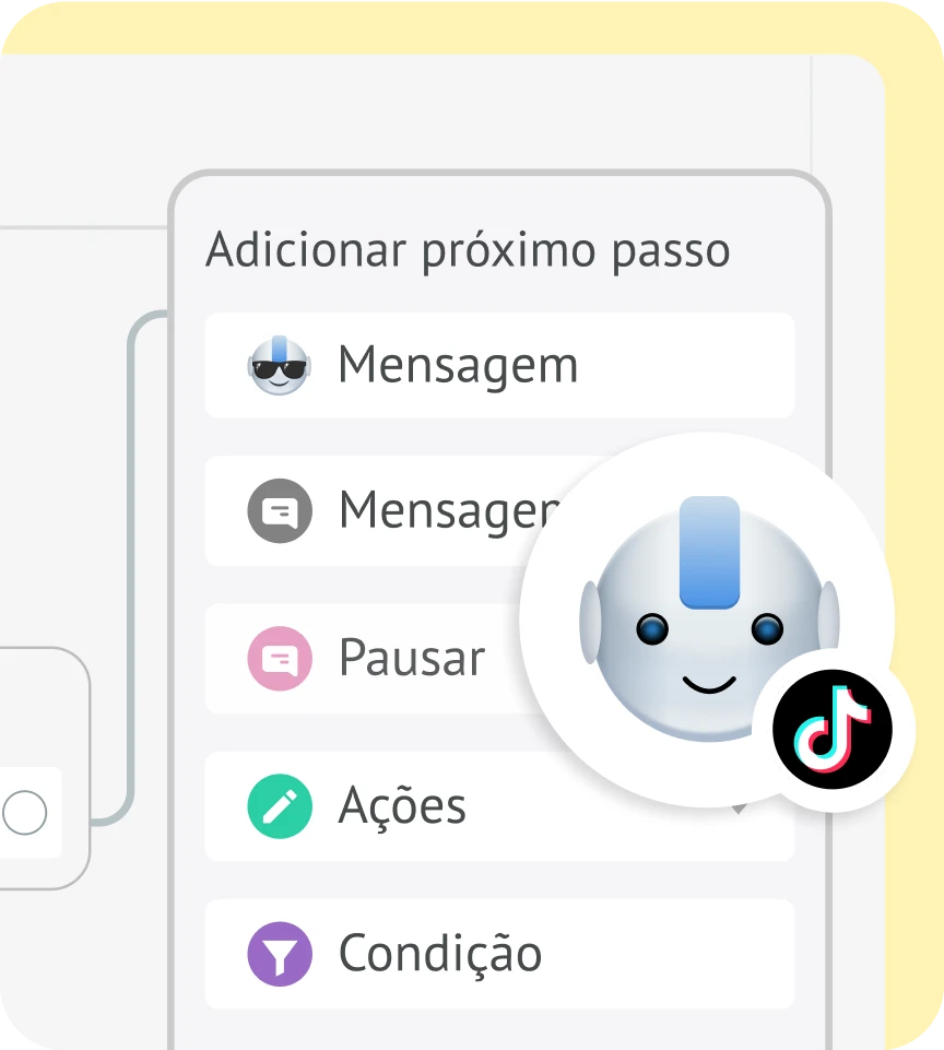 Automatize chats, qualifique leads e faça acompanhamentos com um chatbot com tecnologia de IA no TikTok e muito mais.