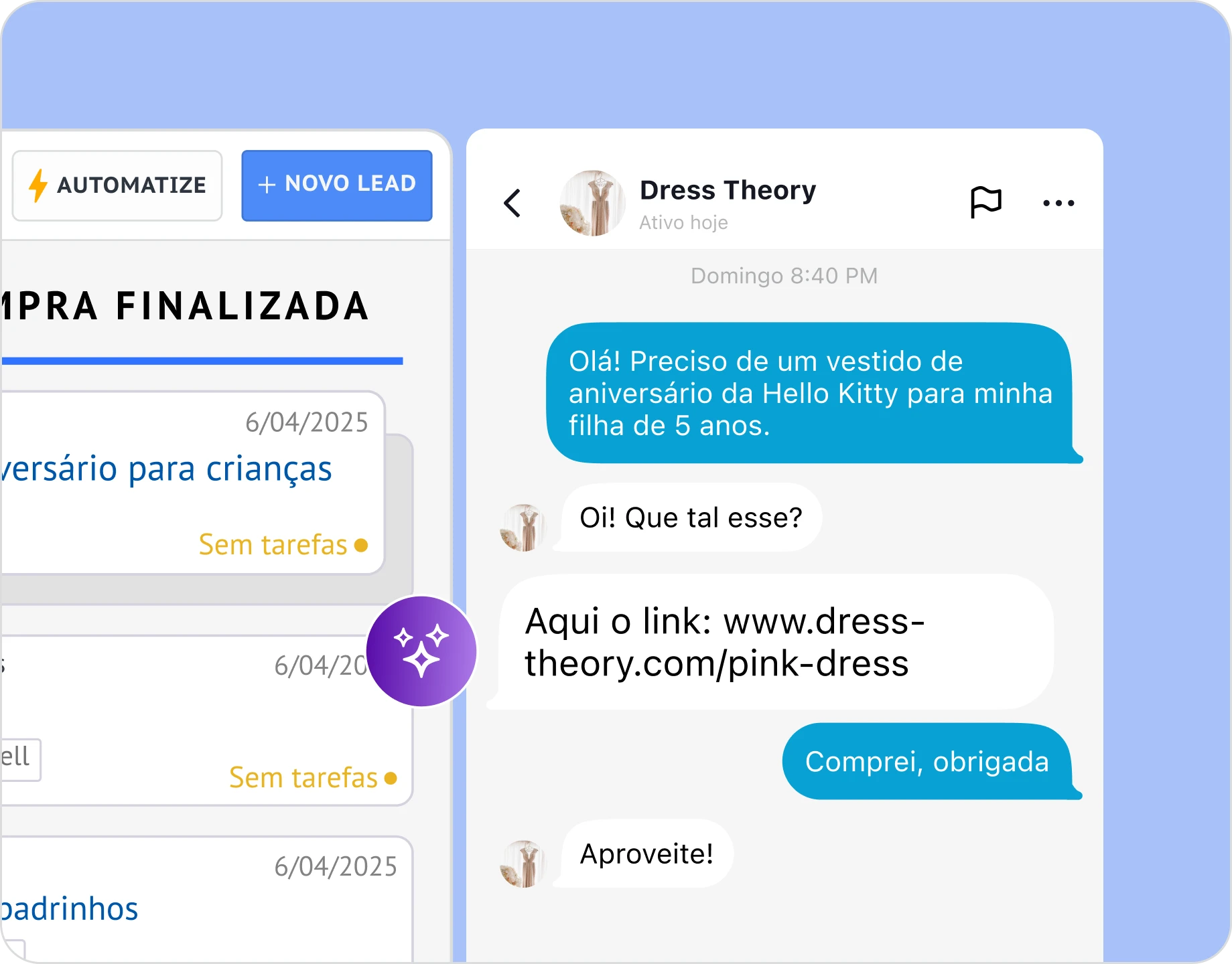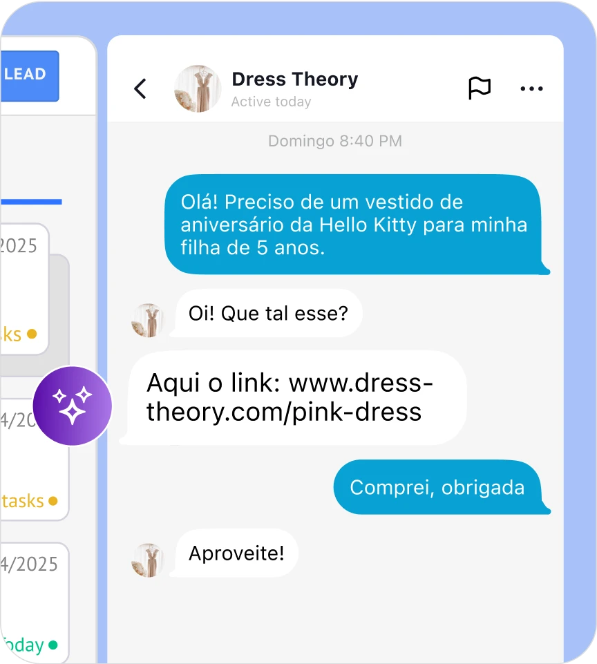 O Agente de IA da Kommo mantém as conversas ativas. Ele responde perguntas, informa sobre produtos e faz